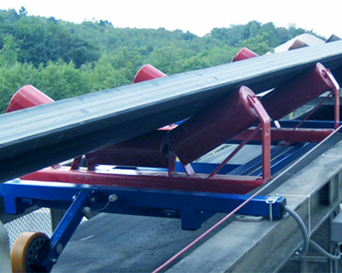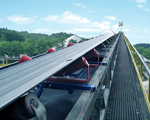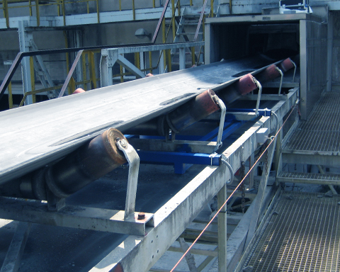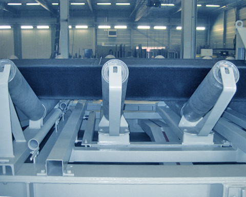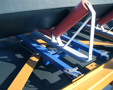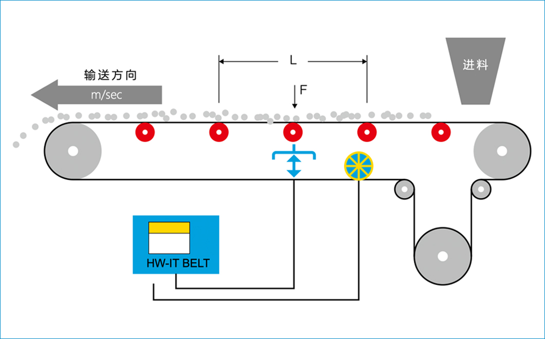传送带上输送的产品通过滚轮椅产生压力载荷。这被称重框架拾取并送入一个或多个称重传感器。来自称重传感器的重量信号由评估电子设备记录和标准化。电子设备将重量信号与传送带的速度联系起来,并以此计算质量流量 (t/h)。随着时间的推移,质量流量由电子设备“积分”,因此可以得到输送的绝 对量 (t)。