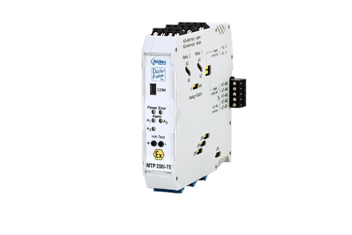 通用转换器MTP200i TE处理各种输入信号(mA、V、PT100,电位计、热电偶、热电偶电阻器)。通过我们的软件可以轻松进行配置。输出为电流隔离的mA模拟输出。此外具有的设备错误报警和三个极限报警配备。继电器触点可以是集成电路,用于安全关闭被使用