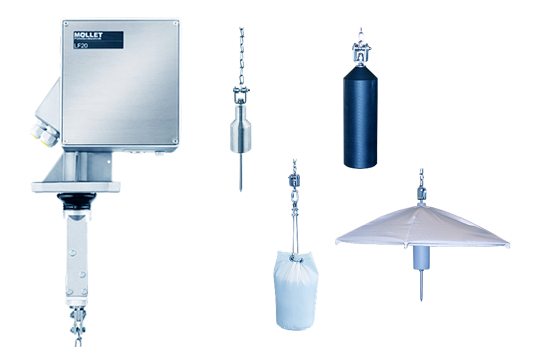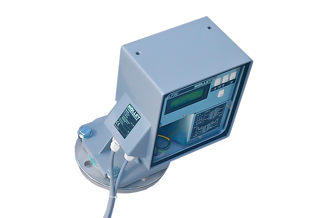 感应砝码通过钢带降低到筒仓或地堡中。当重物撞击散装材料表面时,卷尺上的拉力减小。无论散装材料的密度或粒度如何,不同的传感砝码都能实现精测量。LF20 的电子设备会立即识别出拉力的降低,并停止降低重量。然后输出与测量距离成比例的 4-20 mA 测量信号,并且传感重量移回上端位置。该确定的测量值将保留到下一个测量周期。该信号通过内置在控制柜中的易于阅读和使用的显示设备进行可视化。
