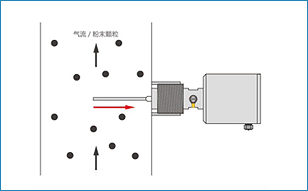 安装位置在除尘器的出口处,通过在管壁上打孔,焊接到螺套上,并拧紧到灰尘探测孔内。操作距离为管道直径的三倍,传感器长度为管道直径的1/3-2/3.